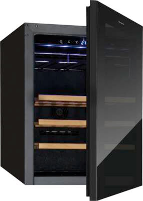 Weinschrank, 118 l Rauminhalt, Holz-Ablageflächen: 3, Innenbeleuchtung, LED, abschließbare Tür, Glastür, Energieeffizienzklasse G, Breite: 60 cm, Höhe: 82 cm, Tiefe: 48,5 cm